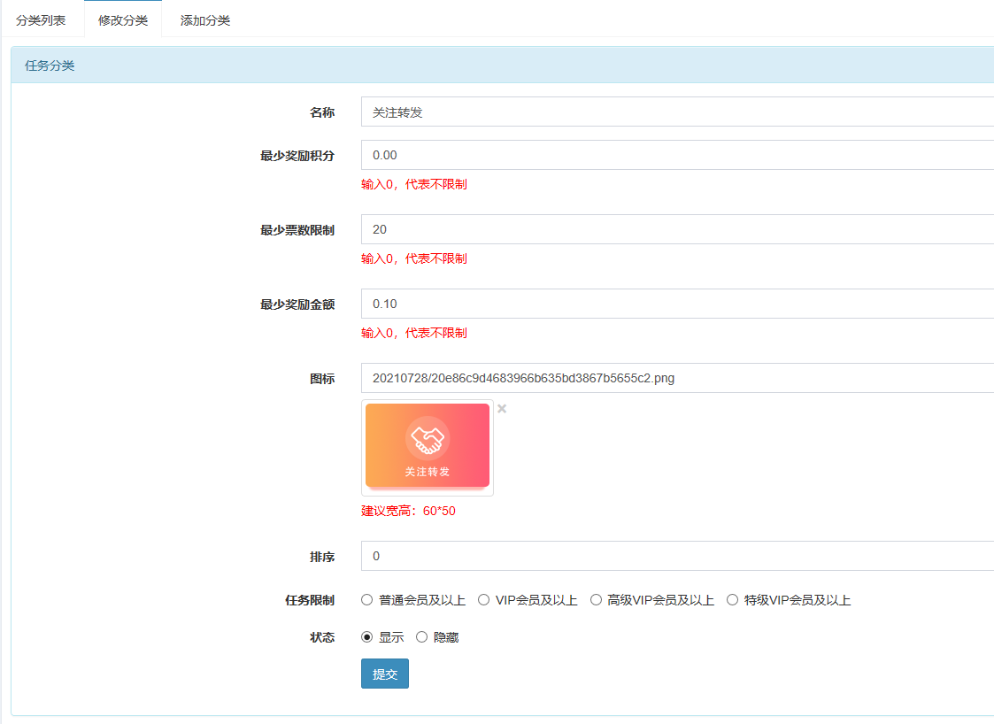 后台管理栏目添加栏目